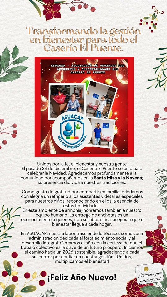Este esfuerzo refuerza nuestro compromiso con un servicio confiable y sostenible. El informe resultante guiará acciones que beneficien a todos en El Puente y veredas cercanas.