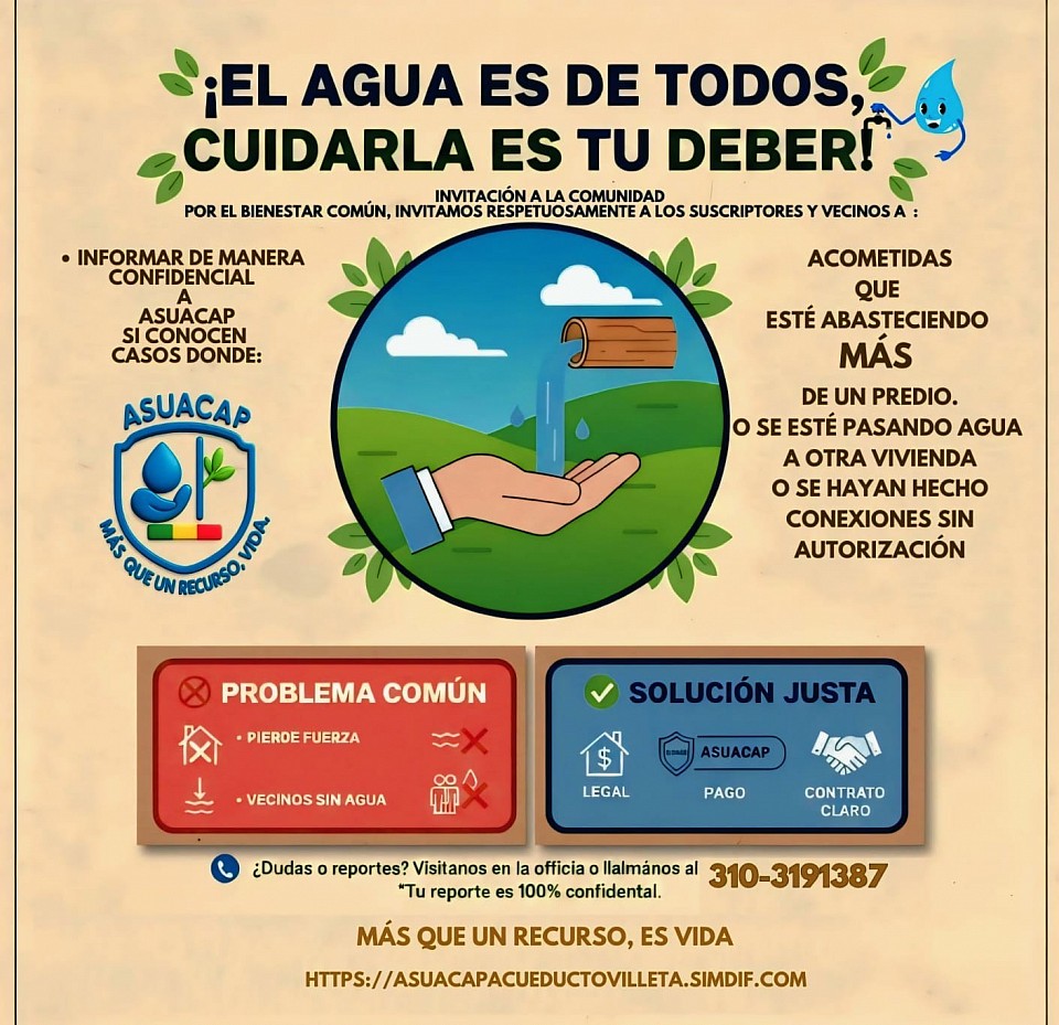 Su participación es fundamental para el manejo eficiente y la sostenibilidad de nuestro recurso hídrico. ¡Los esperamos puntualmente!