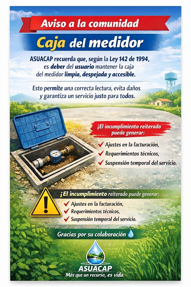 Recordamos que el micromedidor y sus sellos de seguridad no deben ser manipulados. Cuidarlos protege su servicio y el de toda la comunidad. Si existen dudas o alguna situación por corregir, el diálogo siempre será el primer camino.